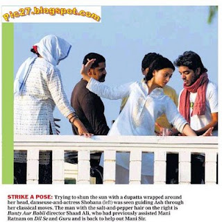 Aishwarya Rai Bachchan during the shooting of her movie Raavan or AshokaVanam in tamil. Ash is Sita in both versions. She is seen here with Prithviraj and Vikram. You can also see Mani ratnam in one of the shots. It is being shot on the banks of Hoogly. Music for the movie is my Oscar winner A R Rahman.