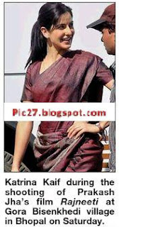 Bollywood actress Katrina Kaif during the shooting of Director Prakash Jha's film Rajneeti at village Gora Bisenkhedi in Bhopal.