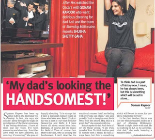 Sonam Kapoor celebrates Slumdog Millionaire oscar victory at home. In her words, to think that dad is part of history now, i mean he has always been, but this is something which will be set in stone.